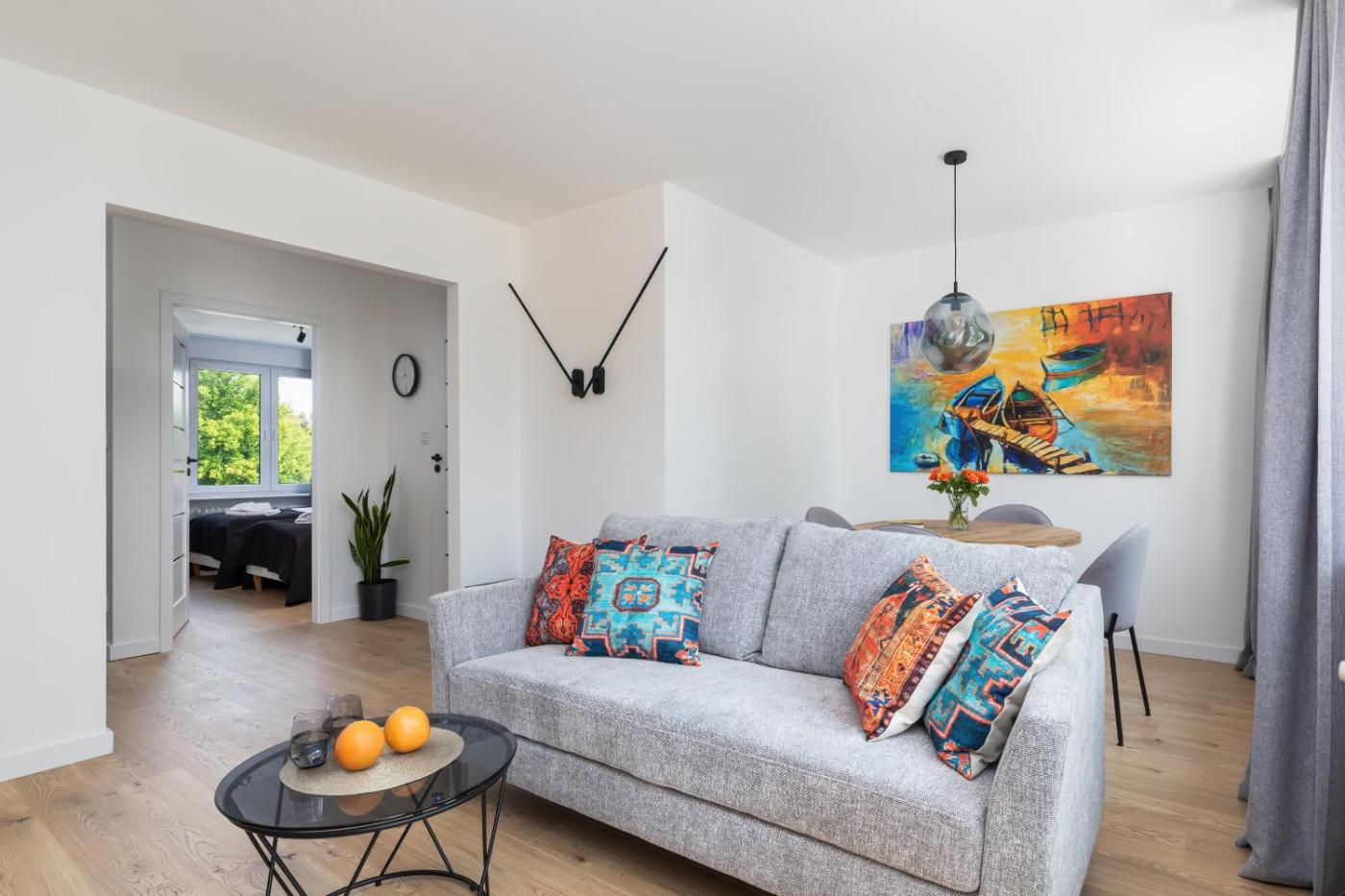 Apartament z 2 sypialniami. Guests can make meals in the kitchen that features a stovetop, a refrigerator, a dishwasher and kitchenware. The spacious apartment features a flat-screen TV, a washing machine, a private entrance, soundproof walls as well as garden views. The unit has 3 beds. Apartament - 4 osobowy. Powierzchnia pokoju ok.: 65 mkw.