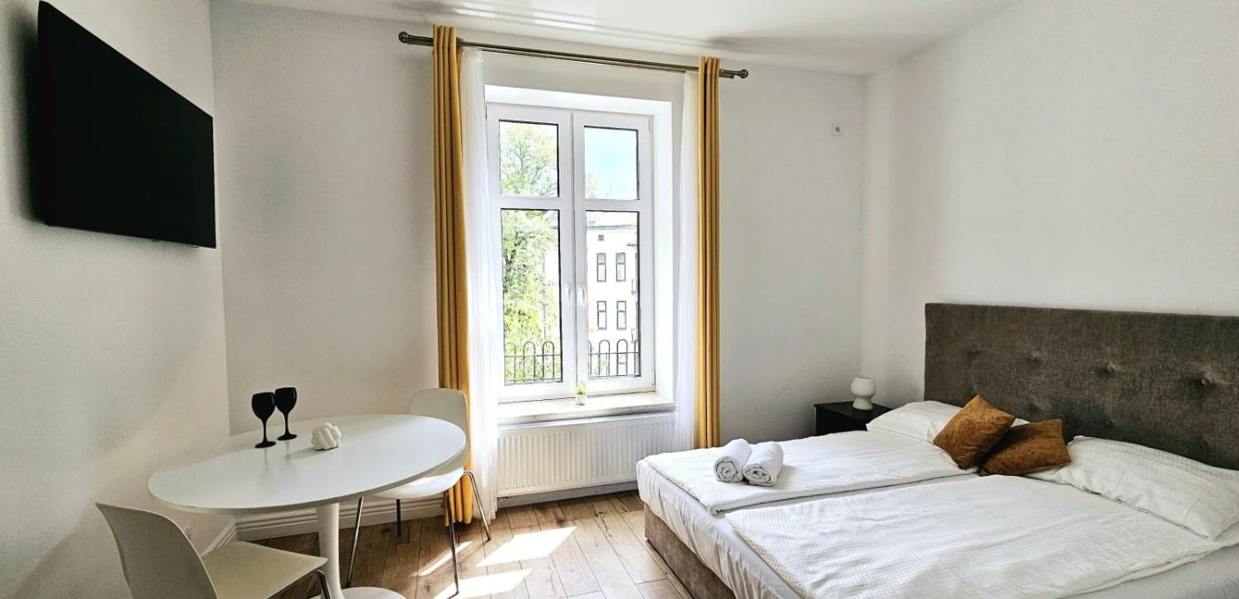 Apartament typu studio. Boasting a private entrance, this apartment comes with a kitchenette, 1 bedroom and 1 bathroom with a walk-in shower and a hairdryer. The fully equipped kitchenette has a stovetop, a refrigerator, a dishwasher and kitchenware. The apartment features a flat-screen TV, soundproof walls, a tea and coffee maker, a dining area as well as ancourtyard view. The unit has 1 bed. Apartament - 2 osobowy. Powierzchnia pokoju ok.: 25 mkw.