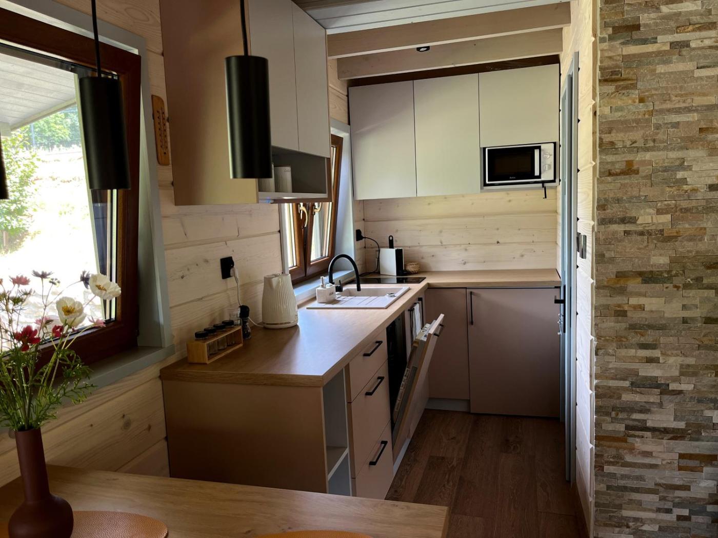 Domek. The fireplace is a top feature of this chalet. Boasting a private entrance, this air-conditioned chalet comes with 1 living room, 2 separate bedrooms and 1 bathroom with a bath or a shower and a hairdryer. Guests will find a stovetop, a refrigerator, a dishwasher and kitchenware in the well-equipped kitchen. The chalet also includes a barbecue. Featuring a terrace with garden views, this chalet also features a tea and coffee maker and a flat-screen TV with streaming services. The unit has 4 beds. Domek - 6 osobowy. Powierzchnia pokoju ok.: 60 mkw.