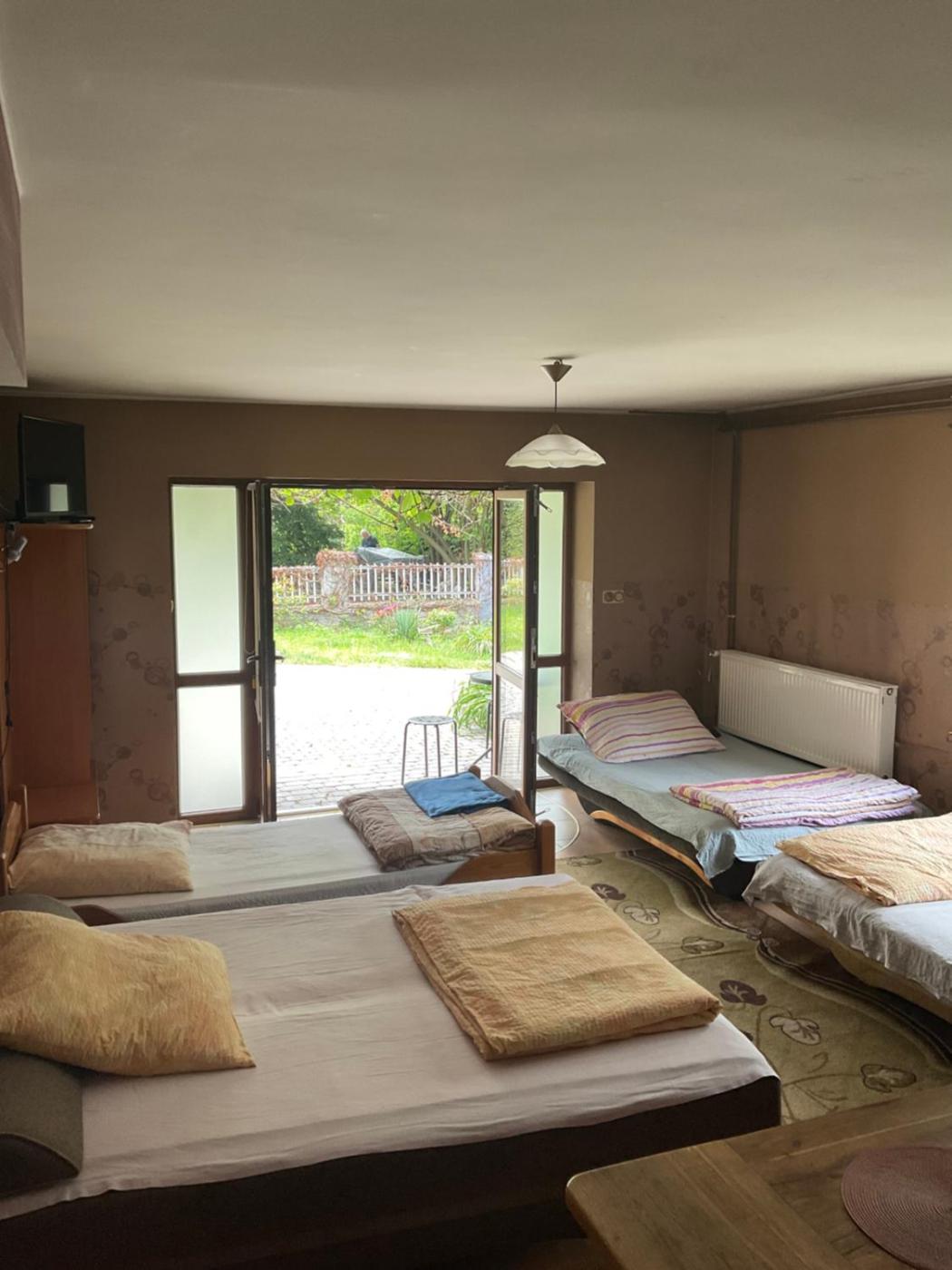 Pokój czteroosobowy z prywatną łazienką poza pokojem. Guests will find a stovetop, a refrigerator, kitchenware and a microwave in the well-fitted kitchen. The quadruple room also offers a barbecue. The quadruple room provides a private entrance, a tea and coffee maker, a terrace with garden views as well as a private bathroom featuring a shower. The unit offers 4 beds. Pokój Czteroosobowy - 4 osobowy. Powierzchnia pokoju ok.: 20 mkw.